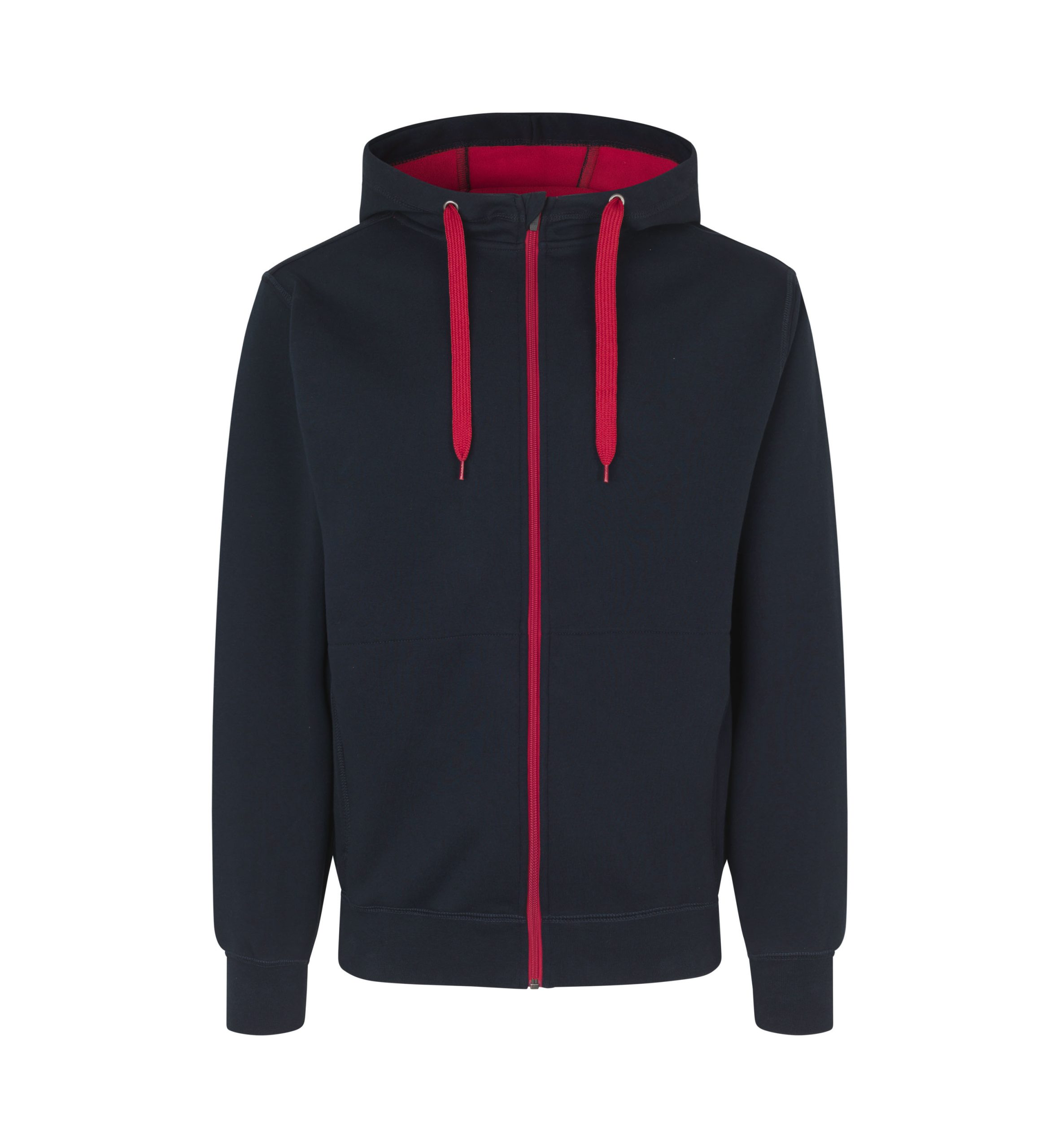 Bonded cardigan med blød fleeceinderside. Smart hættemodel med kontrastfarvet snøre, lynlås og inderside. To sidelommer med lynlås.