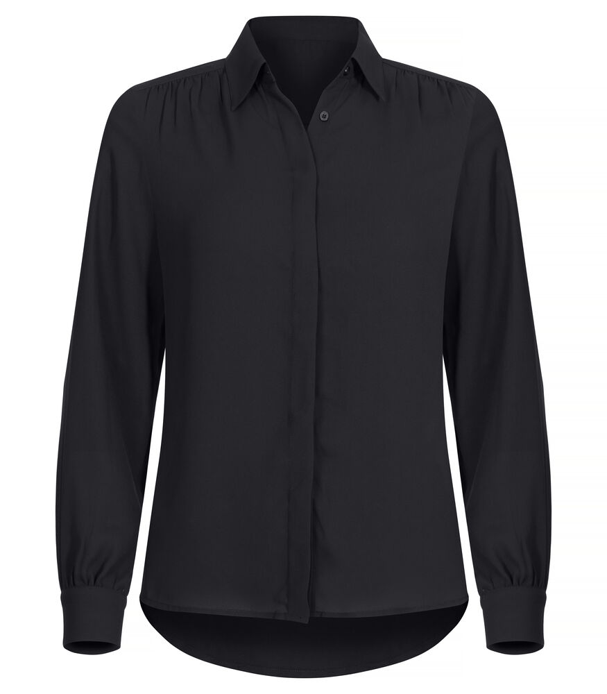 En tidløs klassisk skjorte. Fremstillet i et let og semi uigennemsigtigt materiale, der har et flot flow. Skjult knaplukning. Rynket foran og ved ærmeafslutning, bærestykke bagpå.